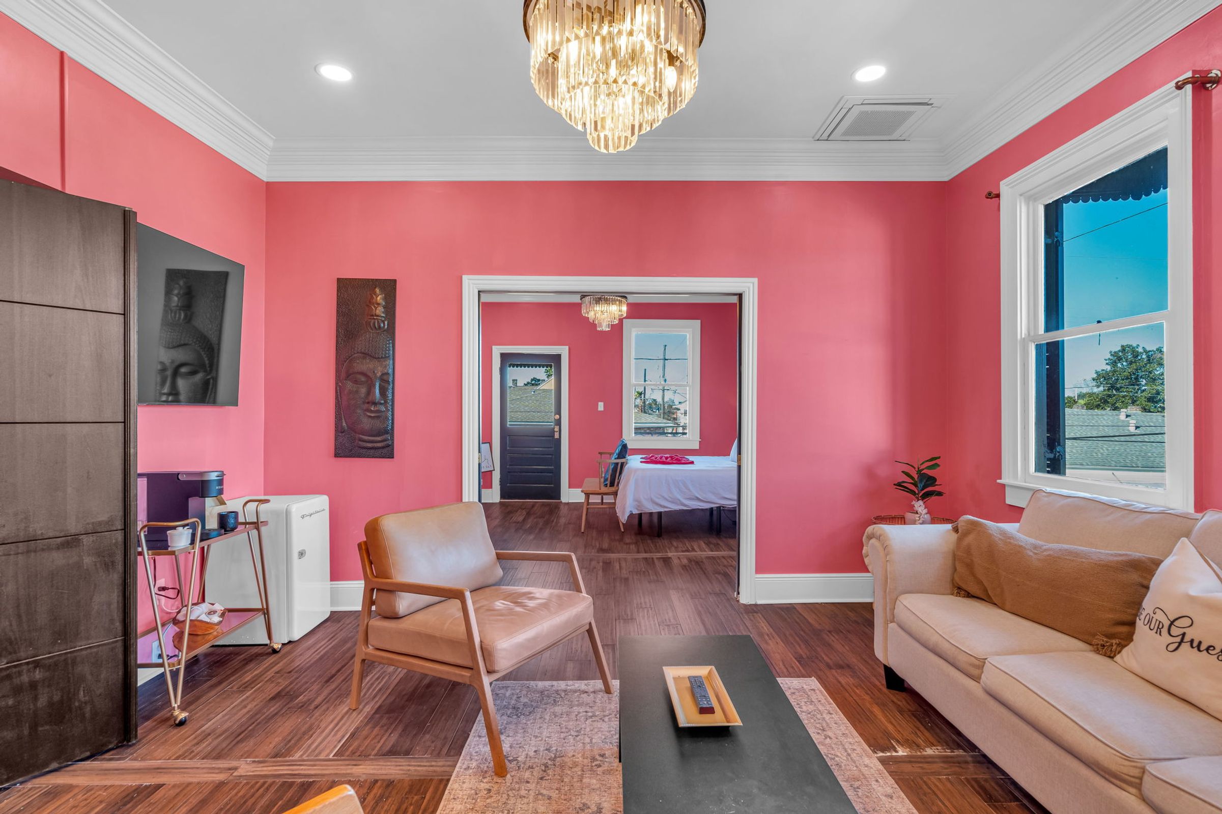 Step into a real-life Barbie Dreamhouse just steps from the French Quarter, where playful design meets upscale comfort. This adults-only 7BR/7BA boutique retreat features bright interiors, fun decor, and resort-style amenities like a hot tub, sauna, and balconies for your group to enjoy. Designed for unforgettable moments, ideal for bachelorette parties, girls’ trips, and birthday getaways. Celebrate Mardi Gras, NYE, French Quarter Fest, or Essence Fest in total style.